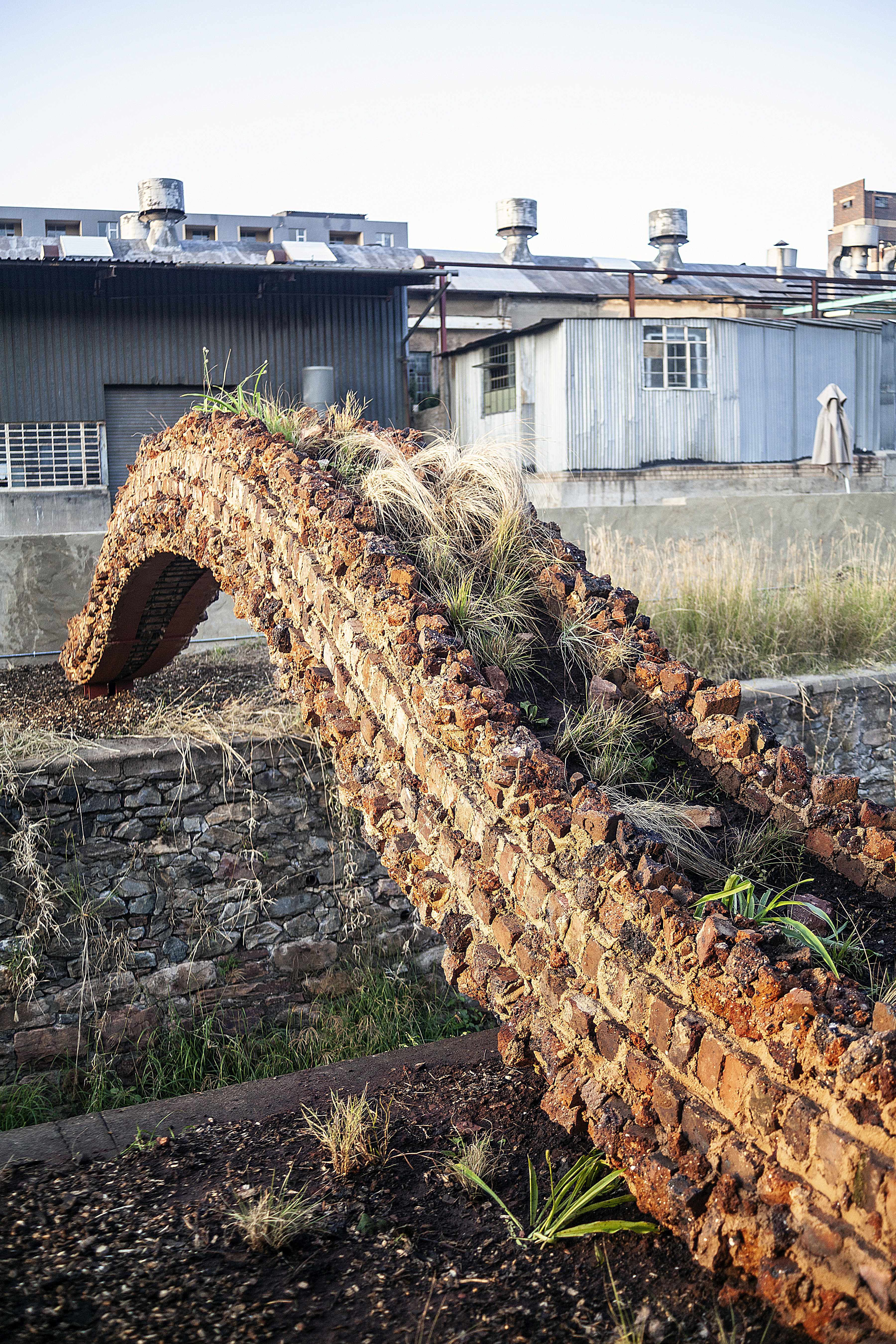 Ophidian’s Promise is a public artwork comprising of an urban wildlife eco-duct and a moss wall text. The eco-duct is built with historical clay bricks sourced from the area to make a holding space for the soil and endangered Soweto highveld biome grasses and plants that create the safe passage for urban wildlife over the Jukskei river culvert.